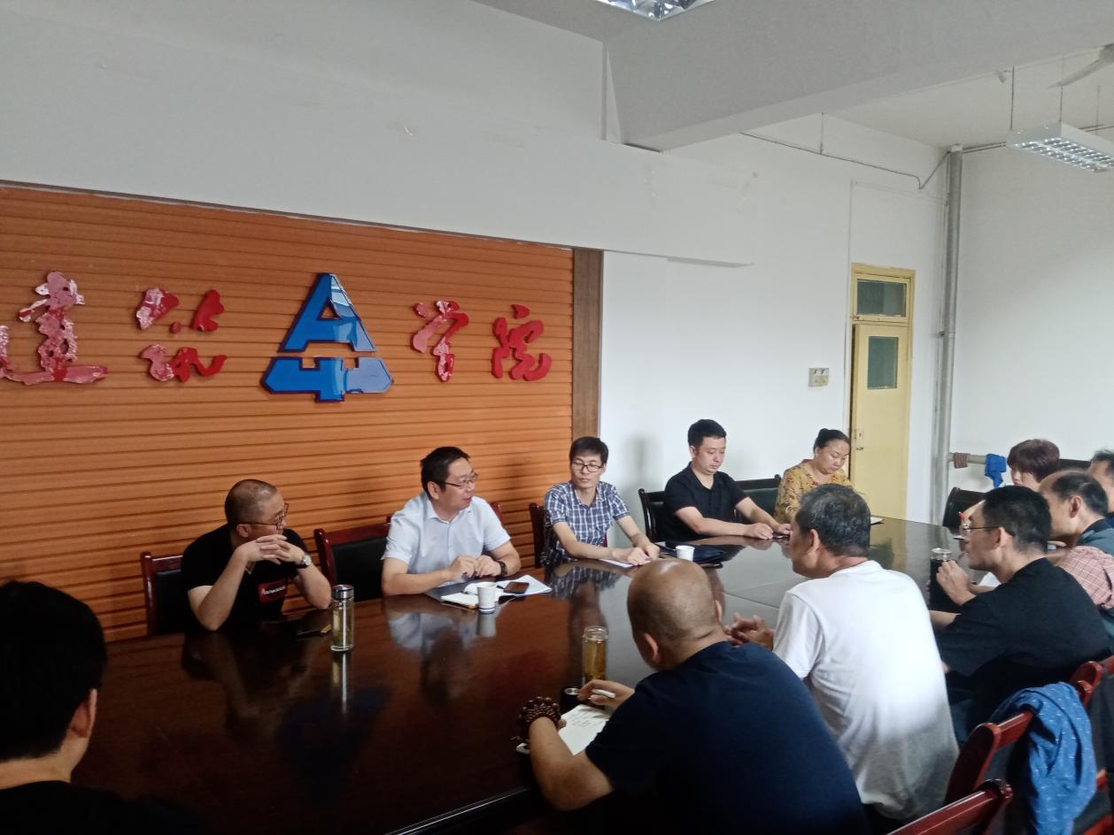 On the morning of September 16, 2020, Guo Xizeng, deputy director of educational textbook branch of China Architecture & Building Press, Jiang Weimin, director of Shaanxi Teaching Material Service Center, and editor Zhang Wei were invited to the School of Architecture to hold an exchange meeting on textbook publishing and discuss matters concerning textbook construction cooperation. Zhang Xia, deputy secretary of the Party Committee and vice dean of the School of Architecture, Yu Kanhua, vice dean, Bai Hua, vice dean, Li Ling, deputy director of the Department of Architecture, Wu Yan, deputy director of the Department of Landscape Architecture, and teachers of the school's textbook project participated in the exchange forum. The meeting was presided over by Yu Kanhua, vice dean of the School of Architecture.