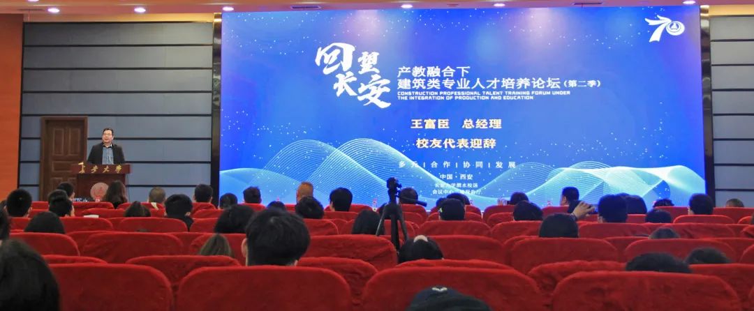 On April 3rd, coincides with the 70th anniversary of the founding of Chang'an University, "Looking Back at Chang'an" - the second quarter of the Forum for Cultivating Architectural Professionals under the Integration of Industry and Education was held in the Conference Center of the north campus of Chang'an University. The forum was hosted by Shaanxi Civil and Architectural Society and School of Architecture, Chang'an University, etc., mainly focusing on the issues of "integration of architectural professional education and industry development", "exploration of diversified cooperation approaches of ‘student-industry-research’ in the construction industry", etc.