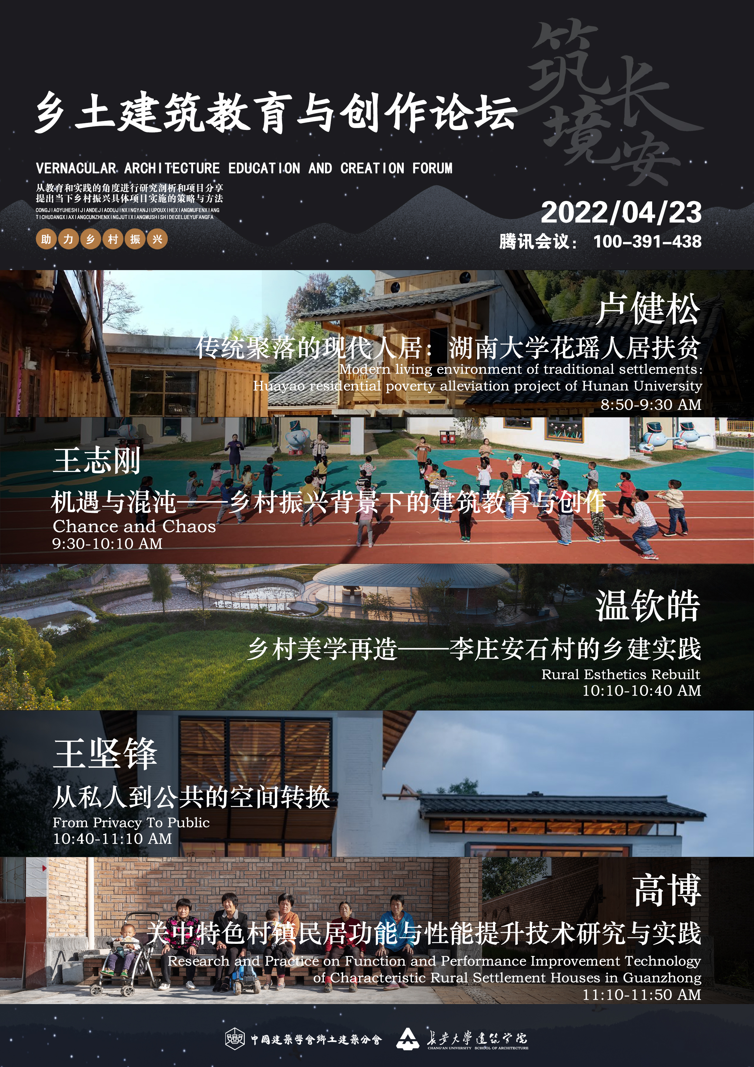 乡村是中华文明基因的载体,是集生活与生产、社会与文化、历史与政治于一身的文明体。乡村振兴战略是治国方略的重要组成部分。近年来,乡村振兴日益受到党和政府的日益重视,在党的十九大报告及中央2022年第一号文件中都指出了实施乡村振兴战略的重要性。乡土建筑,则包含了对历史建筑、地域建筑、传统建筑、传统民居、历史保护单位等的详实解读,其孕育在乡村振兴的广袤土壤之中。我国建筑院校的学者和一线建筑师们都尝试以多重身份介入到乡村振兴背景下的建筑创作之中,并取得了卓有成效的成果。本次论坛邀请多位知名学者及建筑师,从教育和实践的角度进行研究剖析和项目分享,提出当下乡土建筑具体项目实施的策略与方法。