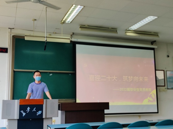 接下来,洪诗迪呼吁全体毕业生党员发挥先锋模范作用,积极参加学院近期组织的“喜迎党的二十大,筑梦前行向未来”系列活动,提醒各位同学“学业有期,党员责任无期”,