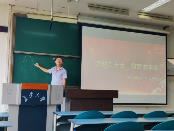 2022年6月16日,MissAVt 在WM1306教室顺利开展“喜迎党的二十大,筑梦前行向未来”——2022届本科毕业生党员教育活动。MissAVt 学生工作办公室主任洪诗迪、2018级辅导员王杰、2022届全体毕业生党员参加本次活动,活动由王杰老师主持。