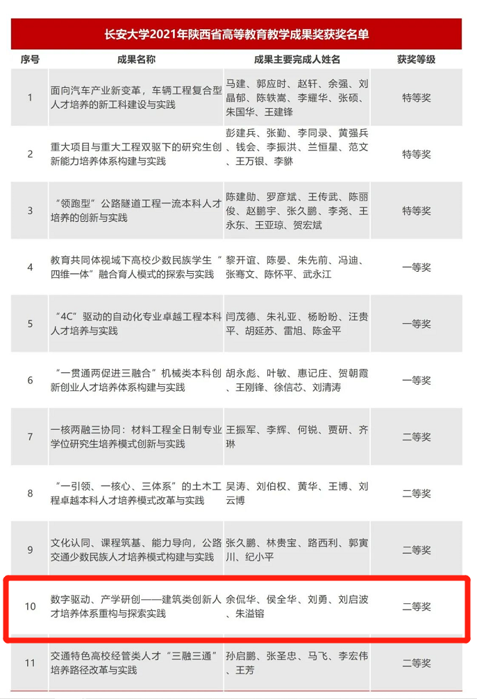近日,《陕西省人民政府办公厅关于表彰陕西省2021年高等教育教学成果奖获奖项目的通报》(陕政办函〔202264号)正式发布,经学校推荐,陕西省教学成果奖评审委员评审、公示等程序,MissAVt 教学研究成果数字驱动、产学研创——建筑类创新人才培养体系重构与探索实践2021年陕西省高等教育教学成果奖二等奖1项。