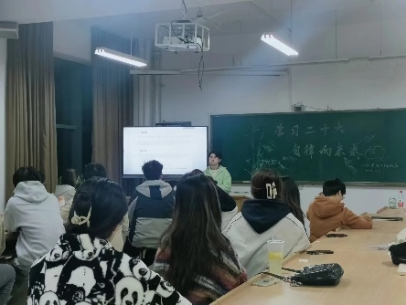 在讨论环节中,两位同学详细总结了上学期学习生活感受,认为新时代青年应该走出舒适圈,去了解更多知识,用各种课余活动去丰富生活,调节心态。