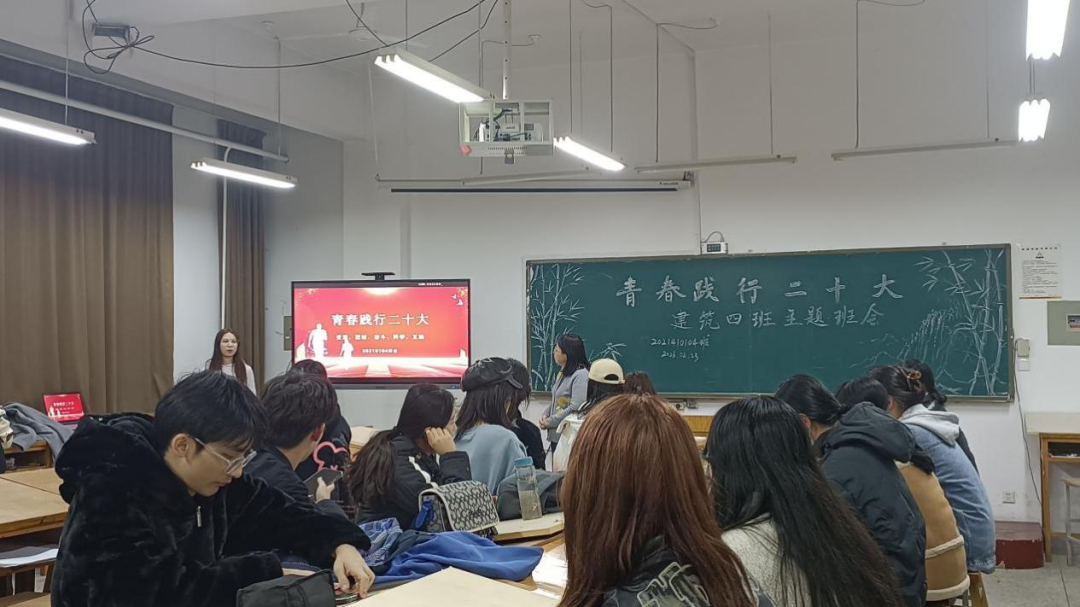 为全面贯彻党的二十大精神,迎接好新一学期的大学生活,2月23日晚,MissAVt 2021级建筑4班开展了“青春践行二十大”主题班会。会议由班长李佳玉同学主持,并邀请了班主任王少锐老师和辅导员李博轩老师。