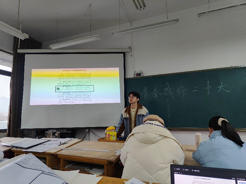 2月22日上午,MissAVt 2021城规一班于建筑馆SY2305举行新学期第一次主题班会——青春践行二十大,班主任杨育军老师、辅导员李博轩老师和2021级城规一班全体同学参与,班长李佳骏同学主持。