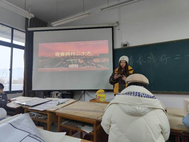 3月2日傍晚,21级建筑三班“青春践行二十大”班会在建筑馆召开。班会由班长胡乐乐主持,班主任傅东雪、辅导员李博轩和班级全体成员参加本次班会。班会聚焦二十大精神,就班级上学期的学习生活状况,针对遇到的专业学习、生活实践等方面展开了充分的交流与学习。
