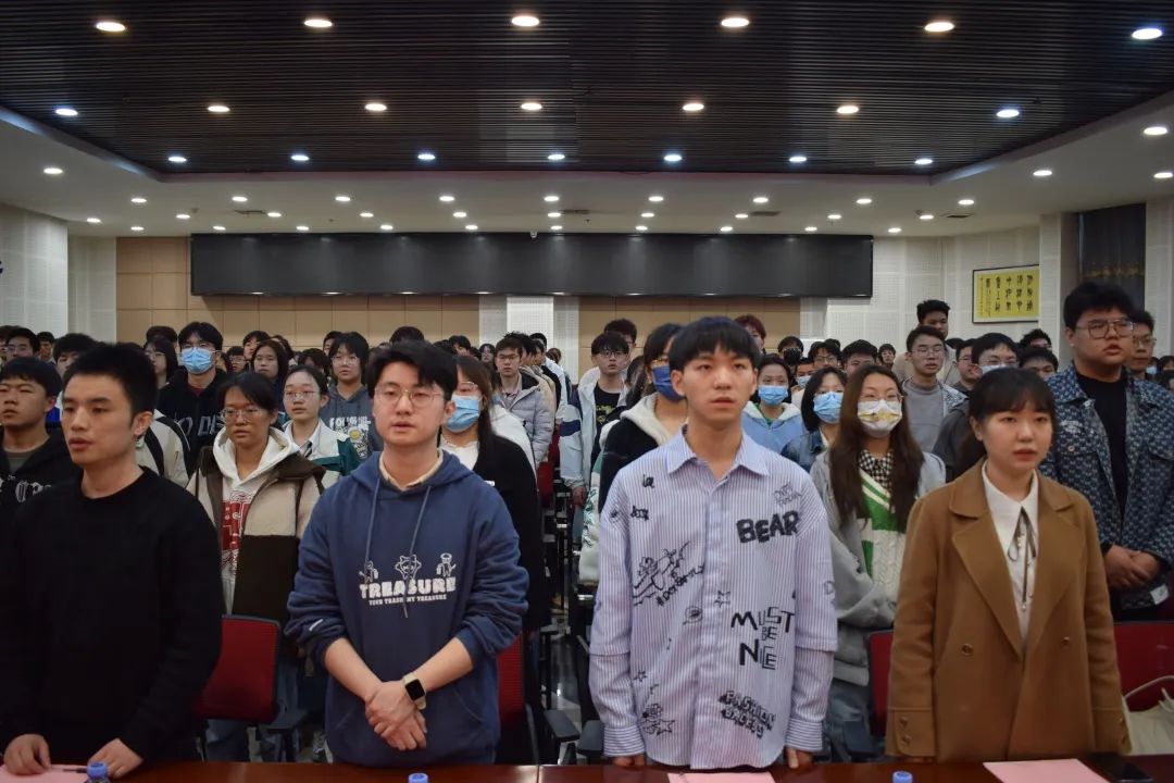 大会在庄严肃穆的国歌声中拉开序幕,全体起立,奏唱中华人民共和国国歌。