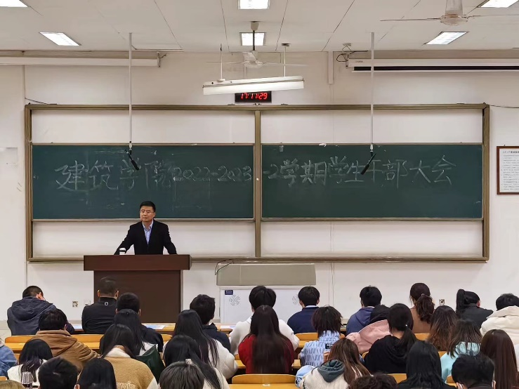 最后,洪诗迪老师做总结发言,他再次强调学生干部在学院工作中的重要作用,并就即将到来的建筑学评估相关工作提出要求,希望各位学生干部能够起到在学生群体中的榜样引领作用,为学院未来发展贡献自己的力量。