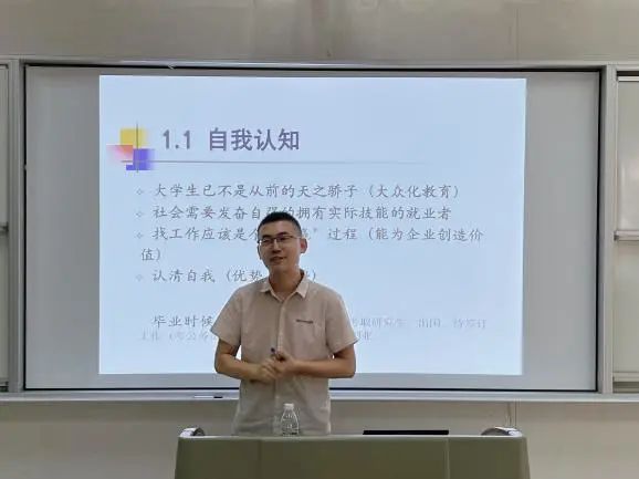 最后,学办主任洪诗迪老师用实际数据向同学们展示过去两年学院整体的升学和就业情况,为同学们细致讲解就业选择、备战、冲刺各个阶段中需要注意的问题和可能面临的困难,提醒同学们要早做打算。洪老师还从就业安排、毕业生就业手续办理流程以及就业信息获取渠道等方面向大家做了详细介绍,希望同学们能主动关注各方面的就业信息,积极参加学校、学院组织的各类招聘活动。洪老师结合自身经历和经验,为同学们的简历制作、面试技巧等方面提出了自己的意见和建议。