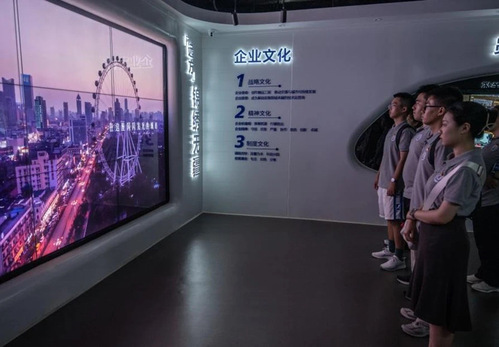 首先,实践队一行人走进设计总院展厅,讲解员结合视频为队员们介绍了中国公路交通及建筑领域的发展历史。接着,队员们参观了环形展厅,讲解员依次介绍了设计总院在行业内多年耕耘取得的各种奖项,公司在道路、桥梁、隧道以及城建等领域取得的巨大成绩以及公司的MissAVt、党建情况和未来规划。整个展厅采用可视化和人机交互的形式,让队员们对设计总院有了最为清晰的认识。
