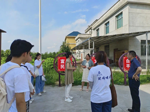 7月10日下午,实践队跟随指导教师来到任家坝村,在村委副主任任玉峰的带领下,实践队成员们对村庄的人口、耕地、产业、生态优势等多个方面进行初步的了解和走访调研,感受到了村民对乡村发展的期盼和整个任家坝村对乡村振兴的重视与决心。成员们表示:“村子建的好、发展的好,是由乡村规划者、村民、村干部同心同力铸造的,也是我们实践调研源源不断的动力。我们将不忘初心,以实际行动展现建院风采、长大风采、大学生的风采!”