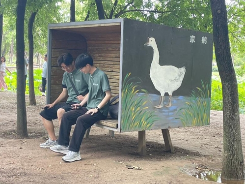 在调研过程中,实践队员多方位观察了湿地公园中的鸟类,发现浐灞国家湿地公园中的鸟类种群极其丰富。令人印象深刻的是湿地公园中部分基础设施的设计手法,如设计者将鸟类的相关知识与休憩座椅相结合,增加公园趣味性的同时起到了一定的宣传保护作用。通过带队老师关宇的讲解,实践队员们了解到湿地公园是鸟类迁徙的重要中转站,可以为处于迁徙途中的鸟群提供补给,具有十分重要的作用。