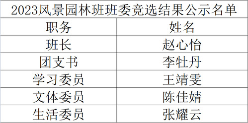 以下是各班级班委竞选结果: