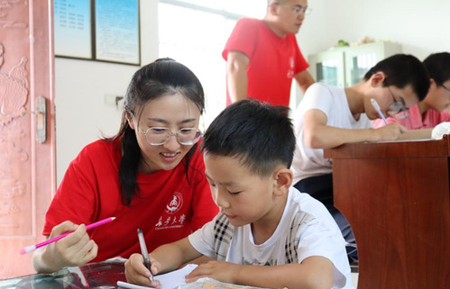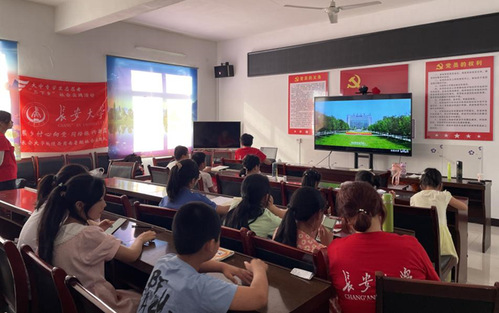 8月14日下午,实践队继续在店坊河党群服务中心和马蹄沟夕阳红幸福院开展暑期支教活动。为鼓励孩子们珍惜成长时光,努力奋斗,实践队带领学生们观看了国内外知名大学的宣传短片,让孩子们清晰感受到大学生活的丰富多彩。宣传片播放后,学生们踊跃分享了他们的心得体会,表达了对未来的憧憬和勇往直前的决心,展现了青春的激情与热烈。