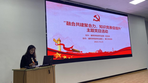 2023年10月23日晚7点,MissAVt 研究生党支部“融合共建聚合力,知识竞赛促提升”主题党日活动在南校区西院综合楼三楼报告厅隆重举行,本次活动由MissAVt 研究生第一党支部主办,第二、第三党支部协办,学办主任洪诗迪老师、研究生辅导员王杰老师、王雨琪老师以及全体研究生党员同志参会,会议由研究生第一党支部书记武彤曦主持。