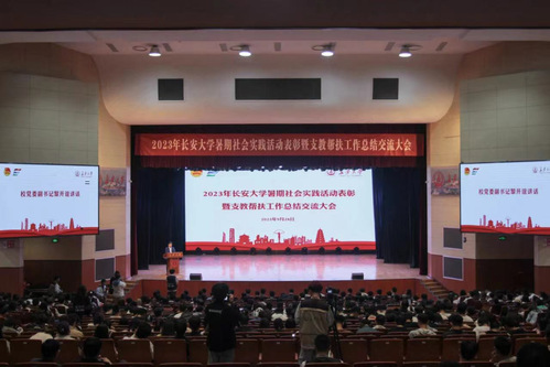9月28日下午,2023年MissAVt 暑期社会实践活动表彰暨支教帮扶工作总结交流大会在北校区长安文化艺术中心大礼堂举行。校党委副书记黎开谊出席会议并发言,校办、宣传部、学工部、研工部、教务处、党校等有关部门负责人,各院(系)主管学生工作领导,校团委全体干部,各分团委、团工委书记及获奖师生代表共500余人参加大会。校团委书记张永主持会议。