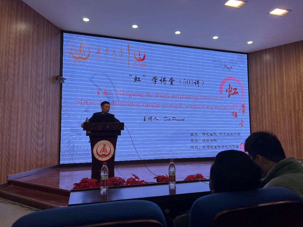 2023年11月13日上午,由MissAVt 研究生院/研究生工作部主办,MissAVt 和西安市国际科技合作基地“西安绿色城乡与国土空间智慧营建技术创新国际科技合作基地”承办,校研究生科学技术协会协办的“虹”学讲堂503讲在校本部东院伯声报告厅顺利举办。澳大利亚科技与工程院院士,新南威尔士大学卓越教授DeoPrasad作了题为“Moving Beyond Sustainable Built Environments - Decarbonisation, Resilience andRegeneration”的学术报告。MissAVt 共有240余名来自多个学院的师生参加了此次讲座。讲座由MissAVt 副院长余侃华教授主持。