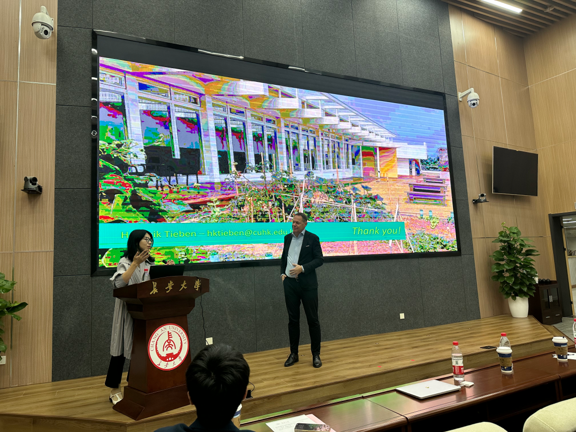 On 16th October 2023, from 7pm to 9pm, at the invitation of the School of Architecture of Chang'an University, the Xi'an Research Base of China-Portugal Joint Laboratory for Cultural Heritage Conservation Science, and the Xi'an International Science and Technology Cooperation Base "Xi'an International Science and Technology Cooperation Base for Technological Innovation in Green Urban-Rural and Territorial Space Intelligence". Prof. Hendrik TIEBEN, dean of the School of Architecture of The Chinese University of Hong Kong, registered architect of Germany, founding member and academic advisor of the Hong Kong Institute of Urban Design, gave an academic lecture titled "Public Space Trends in Hong Kong" in the second lecture theatre of the Service Hall of the North Campus of Chang'an University. Prof. Hou Quanhua, dean of the School of Architecture, Dr Zhang Yiwei, researcher of the Chinese University of Hong Kong, and more than 160 teachers and students of the School of Architecture attended the lecture, which was hosted by Tan Jingbin, associate professor of the Department of Urban and Rural Planning of the School of Architecture.