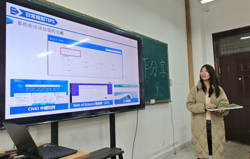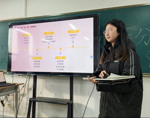 分享会开始,三位学姐依次为同学们讲解个人经历并分享宝贵的学习经验和建议。建筑专业的杨艳学姐为大家分享了自己的大学生活、专业学习、学科竞赛、社会实践等多方面的经历和经验。重点为同学们讲解了有关考研、保研、就业问题,还推荐了很多高效的学习方法和文献检索渠道。并且十分鼓励大家积极参加学校乃至社会各种活动,多观察社会多思考多记录,“一分耕耘一分收获”。