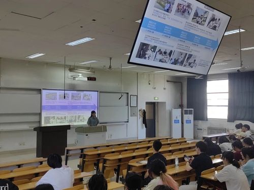 随后,曹轩竹同学结合2023年暑假担任实践队队长的经历和团队实践成果向同学们全面介绍了团队实践。她从前期的实践计划制定到中期实践过程中交流调研再到后期的成果总结与展示,为同学们做了详细的讲解。同时,曹轩竹也结合图片与视频的方式向大家分享了自己在实践过程中的趣事,以亲身经历告诉同学们,“三下乡”实践过程中不仅能很大提升个人与团队的能力,而且在实践过程中也有令人感动的瞬间。