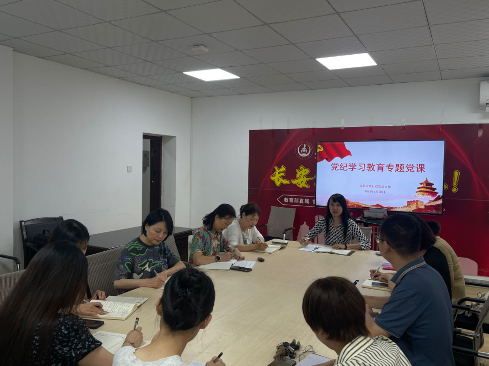 为了深入学习贯彻新修订的《中国共产党纪律处分条例》,扎实推进党纪学习教育,进一步强化学院党员干部的纪律意识,6月28日上午,行政实验支部联系党委委员,MissAVt 党委副书记、行政副院长冯鹃、行政实验支部书记王妍婷在南校区西院建筑馆二楼会议室,为全体院领导、讲授党纪学习教育纪律党课。