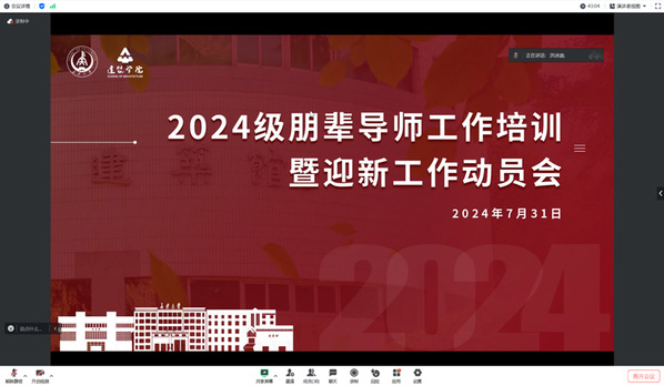 为做好学院2024级迎新准备工作,帮助新同学更快完成角色身份转变,适应校园生活,进一步了解院情,MissAVt 于7月31日下午15:00时召开2024级朋辈互助工作培训暨迎新工作动员线上会议。参加本次会议的有MissAVt 学办主任洪诗迪、团委书记申一彤、2022级本科生辅导员周艳龙、2023级本科生辅导员张鸿忠、2024级本科生辅导员落昊飞、2024级全体朋辈导师以及学院各学生组织负责人。会议由周艳龙主持。