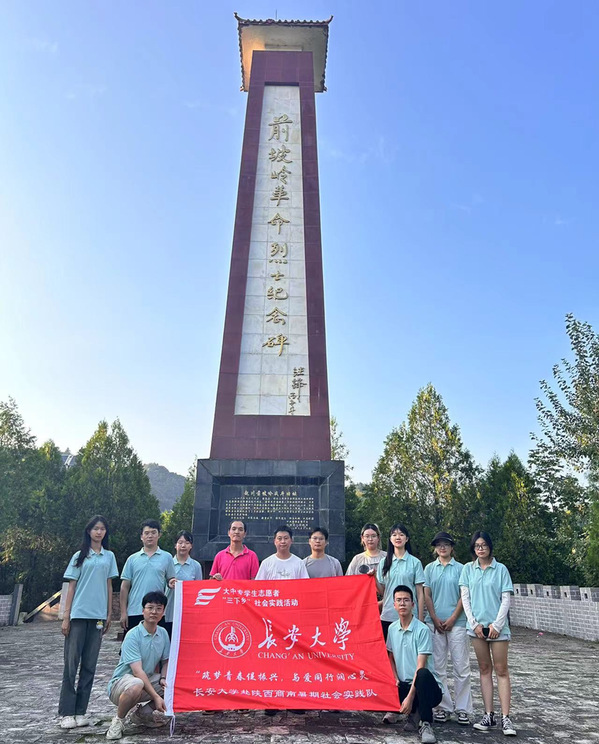 赴陕西商南“筑梦青春促振兴,与爱同行润心灵”暑期社会实践队和店坊河村村委会副主任黄太鹏、驻村第一书记李根一行,来到商南县赵川镇前坡岭战斗遗址进行参观研学。