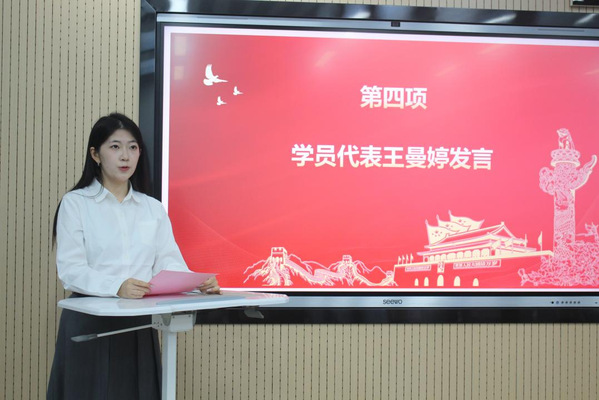 入党积极分子学员代表2023级王曼婷同学发言,表示将严格按照共产党员标准要求自己,争取早日成为一名真正的共产党员。
