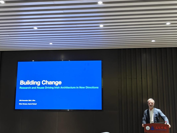 Oliver Kinnane教授在讲座中指出在显著城市扩张的背景下,全球年温室气体排放量将持续攀升。尽管已有国家对建筑环境碳排放量(national GHG emissions)进行量化分析,但迄今为止,尚未建立统一的建筑环境碳排放(national GHG emissions)估算框架。为此,Oliver教授从全生命周期碳(Whole Life Carbon,WLC)的角度出发,提出了Commodity Accounting Method(CAM)与Sectoral Summation Method(SSM)两种估算建筑环境碳排放的方法。紧接着,Oliver教授指出爱尔兰地区建筑环境碳排放约占其国内总量的35-40%,其中约三分之一来自于原材料的生产、材料的运输以及材料建造建筑物的过程,因此进一步提高建筑的再利用率更能显著降低建筑环境碳排放。此次报告不仅为爱尔兰地区建筑领域减排提供了科学依据,也为全球应对日益严峻的气候变化问题提供启示与思考。