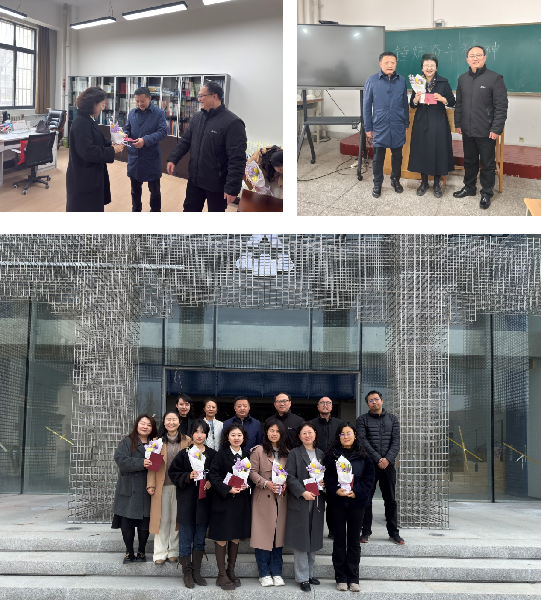 学院党委书记贾侃、院长侯全华一行带着鲜花和贺卡,深入南北校区学院系、所办公室,图档室,专业教室,对坚守在教学科研育人一线的女教授、女教师,家庭困难女教工进行慰问。