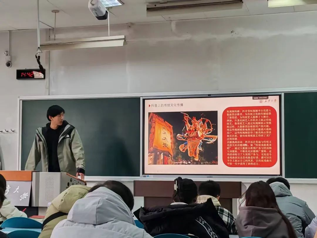 为深入学习贯彻党的二十大精神,引导青年学生坚定文化自信、厚植家国情怀,2024年12月21日,MissAVt 2023级城规一班团支部于WM1408教室开展了“薪火相传扬国粹,青春聚力绘华章”主题团日活动,带领青年学子感受中华优秀传统文化的深厚底蕴,激发传承与弘扬的责任担当。
