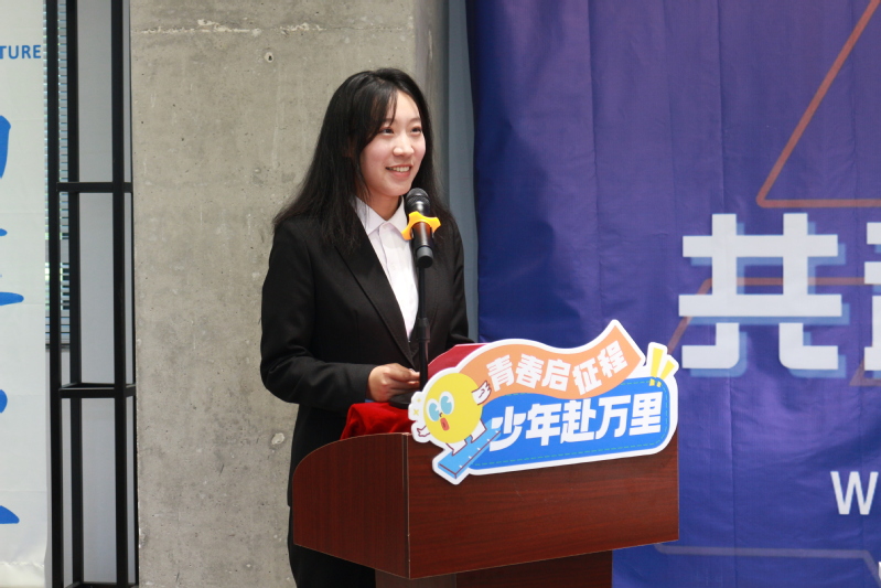 2022级在校生代表白博雨通过“四扇门”分享自己四年的求学感悟:“治学门”讲述专业学习要悟艺术与理性;“实践门”劝用知识反哺社会;“坚毅门”勉励直面挫折;“方向门”鼓励新生不盲从,做自己的“出题人”。