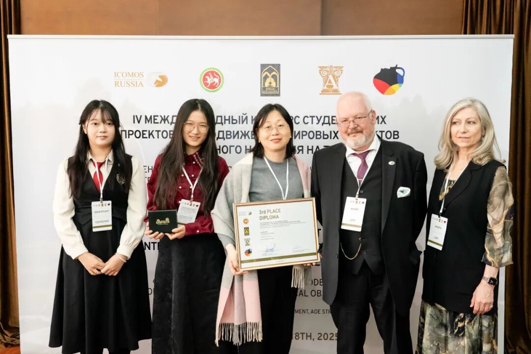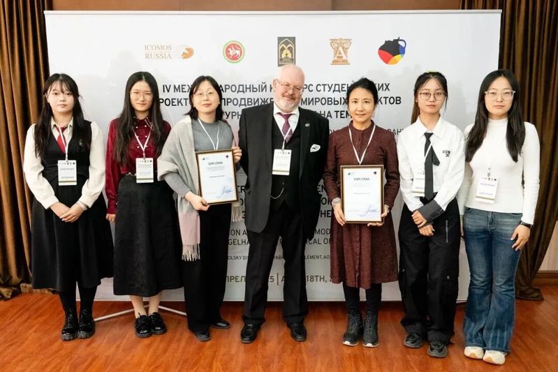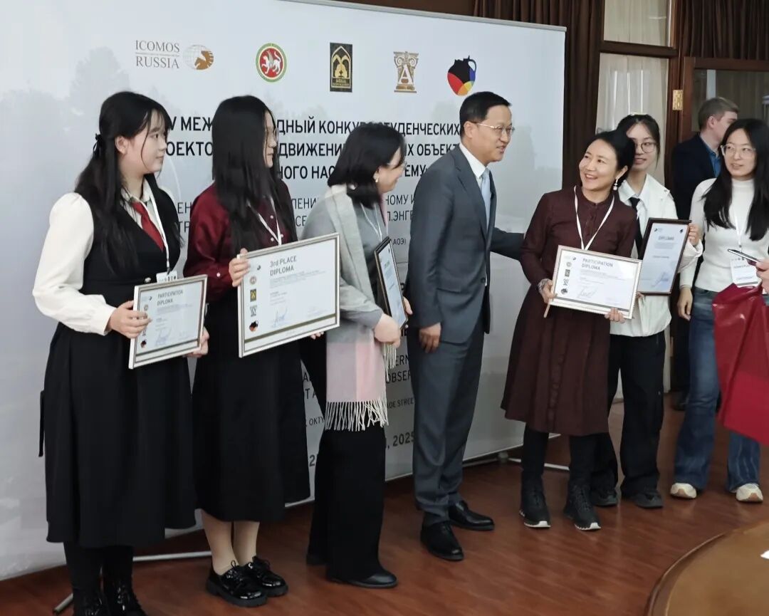 现场竞争激烈,各组队伍方案特色鲜明。由建筑领域的权威专家、文化遗产保护、天文学和其他相关学科领域专家共同组成的国际评审团对投标作品进行评估,最终,学院两只代表队伍荣获ICOMOS-RUSSIA颁发的特殊奖。其中,由王少锐老师带领的学生团队(李宜航、夏天舒)荣获第三名的佳绩,中国驻俄罗斯喀山市总领事馆出席颁奖仪式并对获奖团队表示祝贺