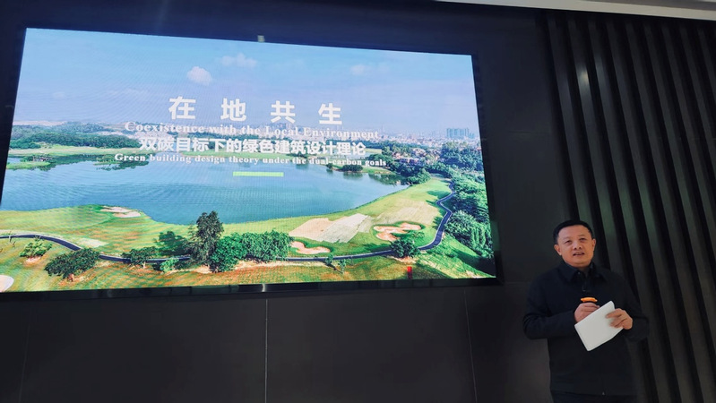 王兴田教授以“双碳目标下的绿色建筑设计理念”为题,从九个维度深入阐述了绿色建筑理念:保持与修复生态环境、在地化建筑布局、环境作用下的建筑有机生成、微气候空间设计、绿色行为与韧性空间、性能优化的围护结构、在地材料与建构、固碳材料与装配建筑以及全生命周期管理。并结合工程案例,生动展示了这些理论在实践中的应用。他强调,“建筑设计伊始是绿色建筑设计最好的开端。”通过精准把控“气候、场地、功能、材料、建造”各维度,可以实现建筑的自洽平衡,契合双碳要求。