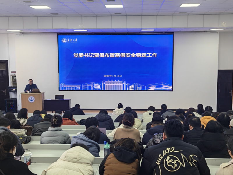 第一阶段为学院2025度工作总结和2026年度工作安排大会。贾侃书记传达了学校近期安全稳定会议要求,结合学院工作、从开展安全检查、防范电信诈骗、禁止非法穿越、做好值班值守、营造假期氛围、清廉过节等方面进行了安排部署。此外,还进行了保密案例学习。